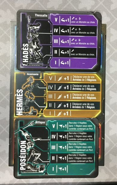 Contrairement aux autres parties, des extensions sont ajoutées dans la partie. 4 nouveaux héros, 3 nouveaux monstres et surtout 2 nouveaux dieux : Hadès (qui remplace Zeus) et Poséidon (qui remplace Athéna). Gros changement, les ports maritimes construits par Poséidon himself, qui vont certainement apporter une nouvelle dynamique de mobilité dans le jeu.