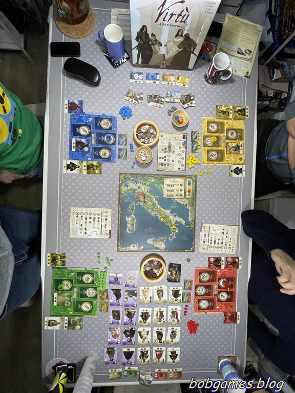 Virtù, c’est un jeu qui depuis sa sortie en fin d’année dernière (chez Super Meeple) taquine la programmation des Bob Games pour y faire une entrée fracassante en rentrée 2022… Et il a obtenu son ticket d’entrée et on y a joué !