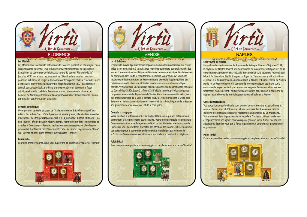 Mais pourquoi votre humble serviteur était si enthousiaste ? Parce que Virtù est présenté comme un jeu expert, exigeant, mélangeant deckbuilding, roue d’actions et conquête de territoires, le tout sans aucune chance et avec un jeu totalement ouvert pour tous les joueurs ! Alors, vous êtes curieux ? Accrochez-vous alors…