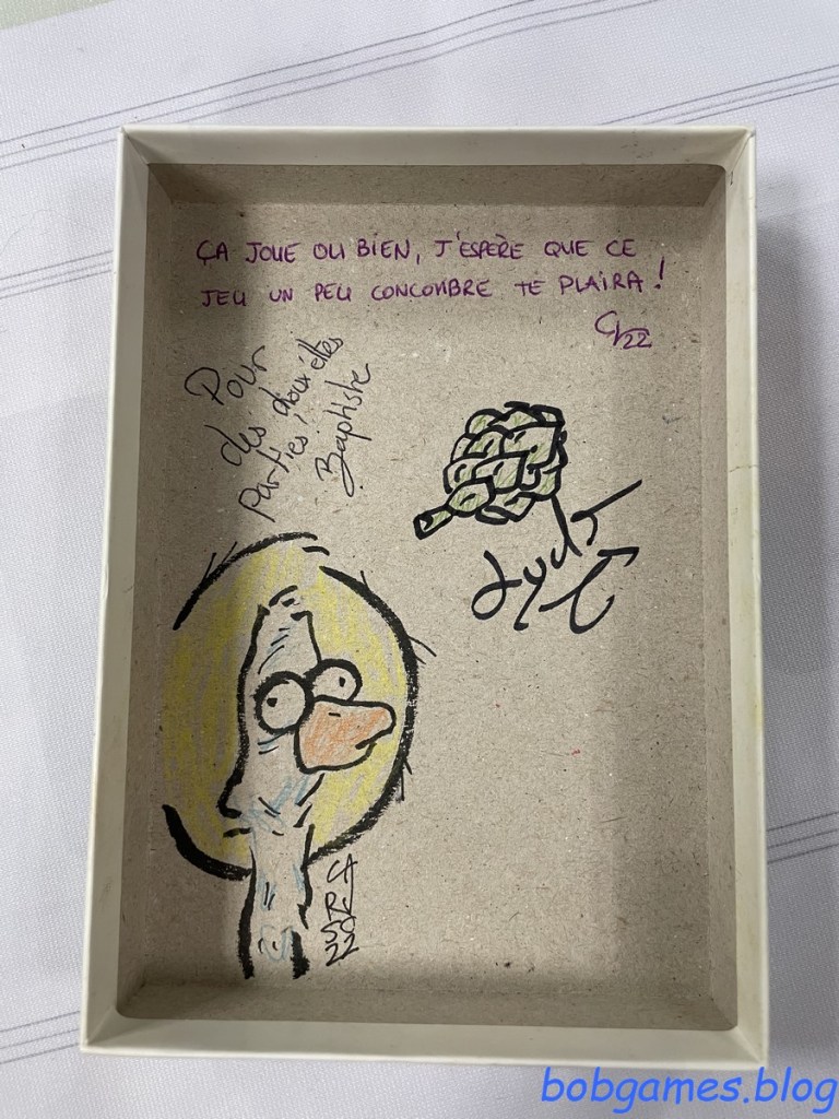 Bilan : on a adoré ! pas besoin de jouer longtemps pour comprendre le potentiel ludique de ce petit jeu tellement sympa. Double achat : l’association « Ca Joue ou Bien » et Minh.