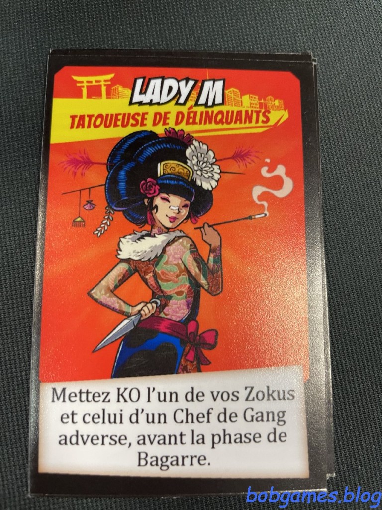 On incarne le chef d’une bande qui rêve de prendre le contrôle de Tokyo. Pour y parvenir, on… lance des meeples, qui représentent les membres du gang, et en fonction de l’arrivée dans la boîte de jeu (sur les pieds, de dos, sur la tranche), des meeples sont éliminés. 3 tentatives pour déterminer qui remporte la bataille du quartier et ensuite on recommence avec d’autres quartiers. Pour pimenter le tout, on dispose de lieutenants avec des pouvoirs spéciaux.