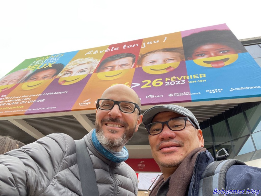 Jeudi 23 février 2023, 7h07. Journée pro sur la Croisette pour cette nouvelle édition du Festival International des Jeux de Cannes. Après un périple de 3 jours nous ayant emmené de Genève à Cannes, en passant par Narbonne (et oui…), Minh et Bob sont prêts à arpenter les allés peu parsemées du sous-sol ludique le plus connu au monde.