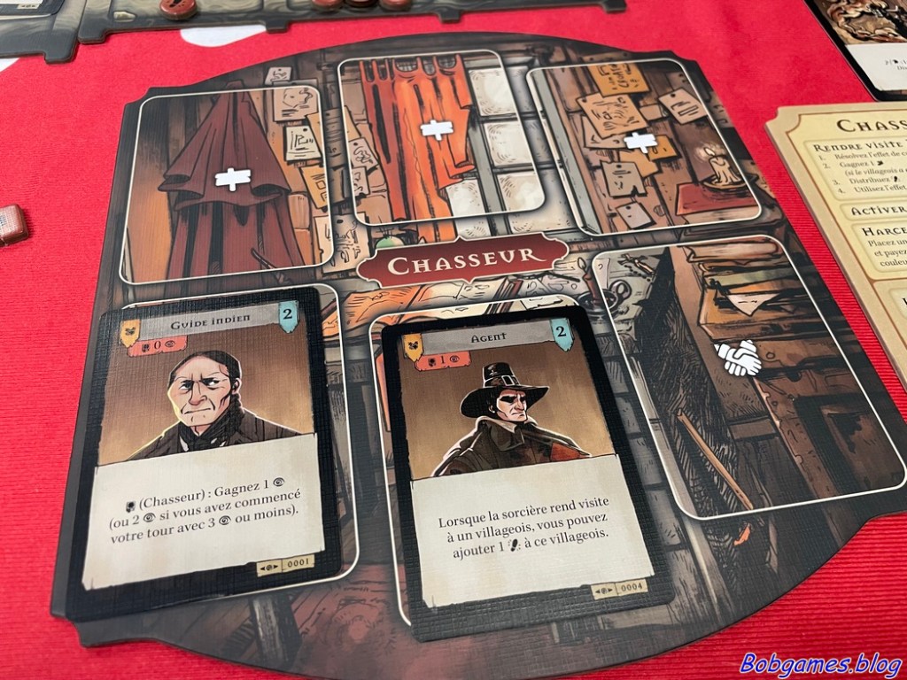 Le jeu se déroule en succession de pose de pions d’action sur les villageois pour obtenir des avantages et enquêter sur les différentes familles de villageois. Le chasseur pourra s’entourer d’alliés puissants ou de revendiquer des lieux emblématiques, lui octroyant des bonus. La sorcière va préparer de puissantes potions et améliorer son familier préféré.