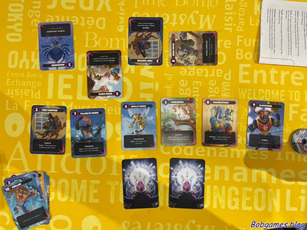 Bilan : soyons clairs. Ce jeu ne révolutionne absolument rien. Il est plaisant et le plaisir d’y jouer est bien présent. Mais n’allez pas imaginer qu’il s’agit d’une pépite ludique. Non. C’est un bon jeu simple avec une phase d’opportunisme intéressante en fonction de nos cartes et de celles de l’adversaire. 3 parties en tout, victoire de Minh 2 à 1. Achat pour Minh.