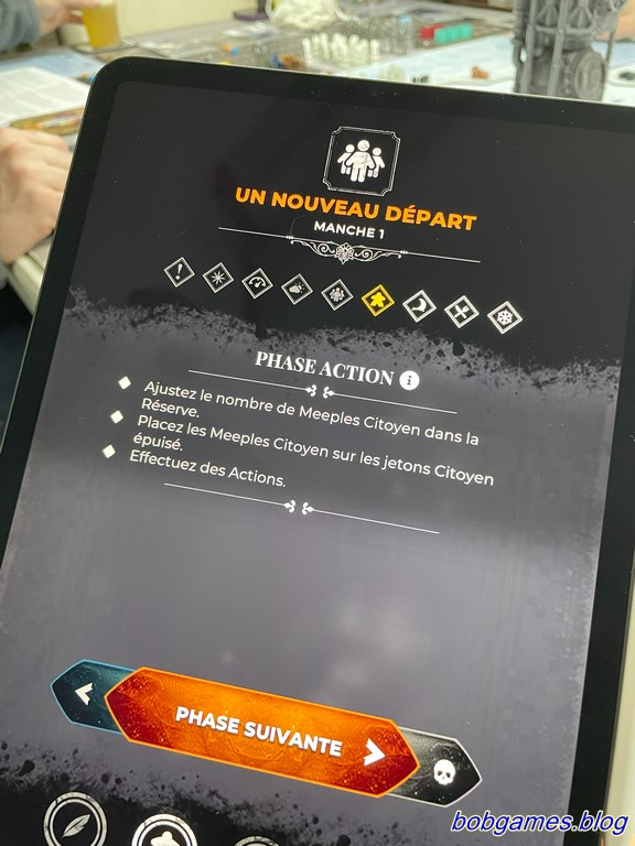 Et puis, soyons encore honnêtes, le jeu est long. Et lourd. Et compliqué. L’application pour nous rappeler où on en est dans les phases, c’est un peu too much. Mais bon, c’est ce qui rend ce jeu unique. On galère ensemble, on se prend la tête, mais à la fin de la journée, on a quand même vécu un moment mémorable.