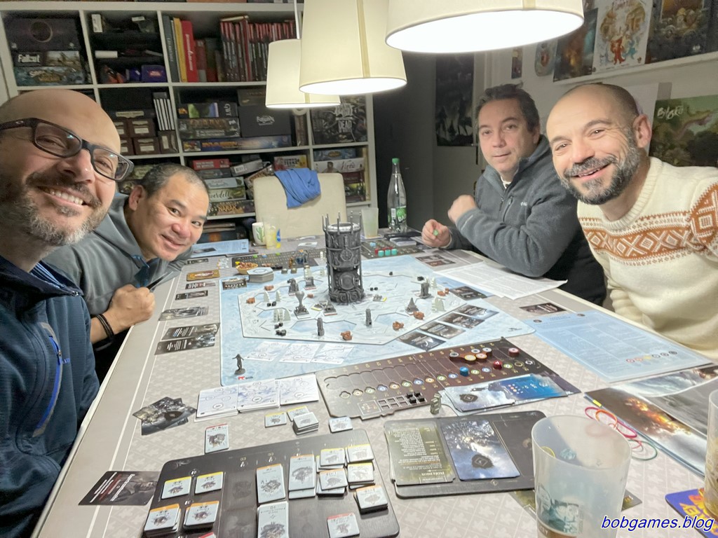 Stefano, qui a fait l’acquisition de ce mastodonte, nous propose donc une partie en compagnie de Stéphane, Minh et Bob. Pas de compétition ici, c’est du coopératif pur et dur.