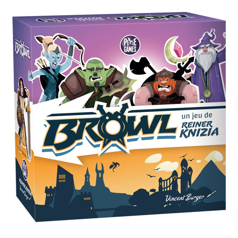 Toujours chez Pixie Games, on récupère une petite table haute avec le jeu Bröwl, un jeu de l’illustre Reiner Knizia. Une simple jeu de cartes d’affrontement entre personnages typiques du médiéval fantastique.