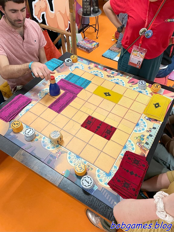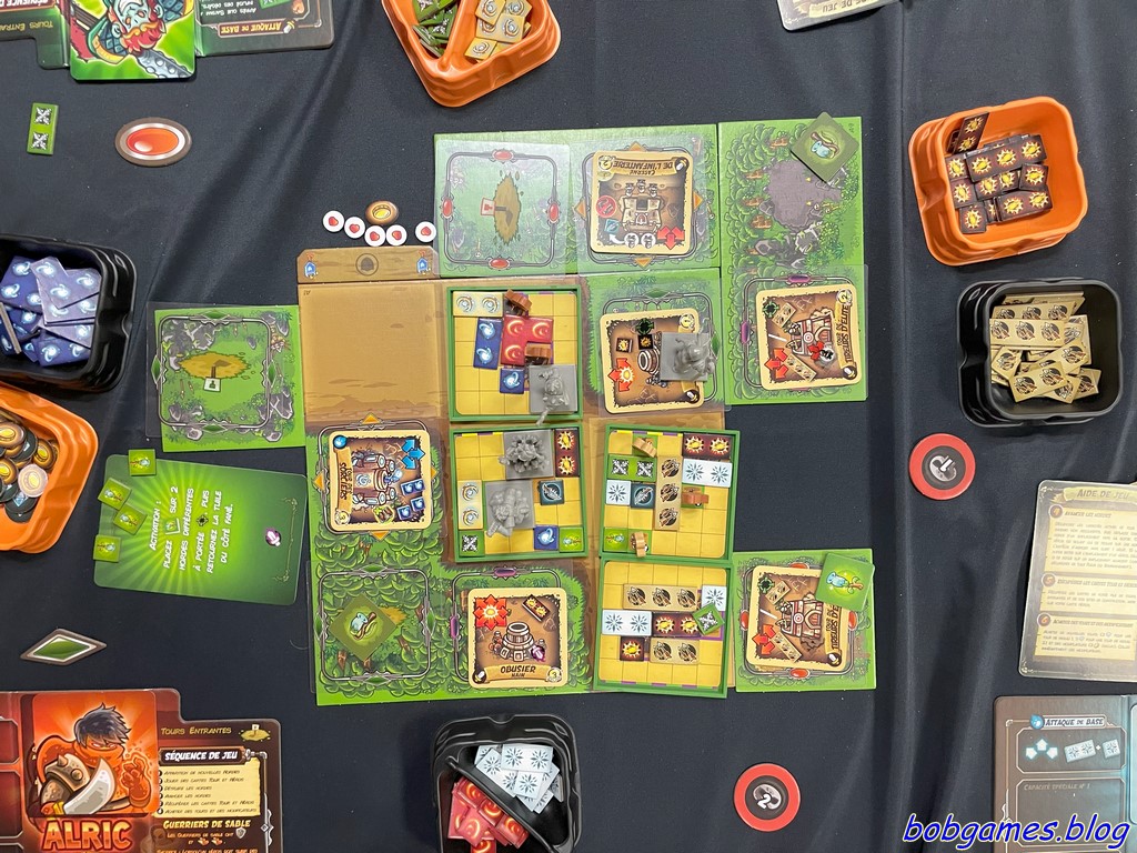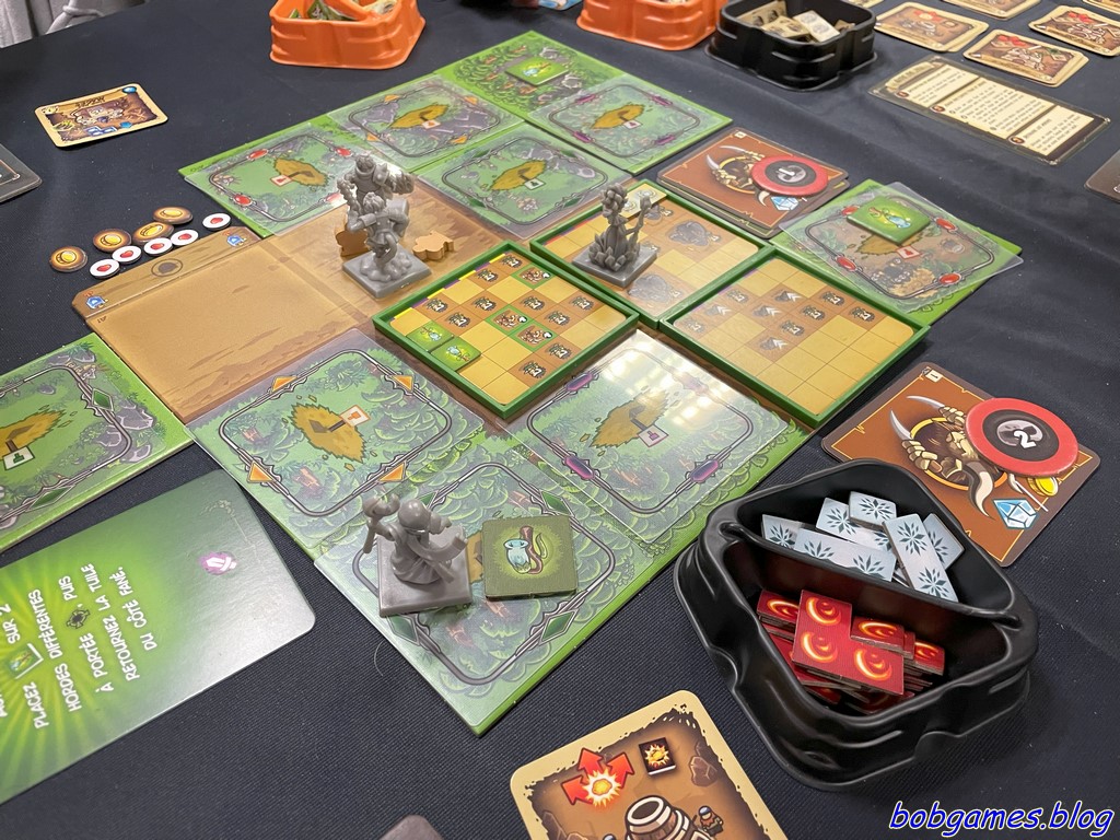 Bilan : Coup de cœur pour Bob et achat avec dédicace. C’est merveilleusement simple et rapide, sans prise de tête. Une partie dure environ 8-10 minutes à 3 joueurs, avec Lucas, Rohan et Bob. 3 parties et une victoire pour chacun. Petit bémol, on l’a teste en rentrant à 4 joueurs avec les règles avancées et fut bien moins dynamique et moins rigolo… Bref, à jouer à trois personnes 😉