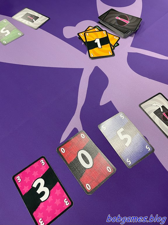 Mais poser des cartes devant soit donne lieu à des interactions fortes avec les autres joueurs, qui vont pouvoir vous obliger à vous débarrasser de vos précieuses cartes. Oui, car il y a des règles de « suivre » les cartes jouées, en fonction de la couleur ou du chiffre. Et ça donne lieu à des situations loufoques.