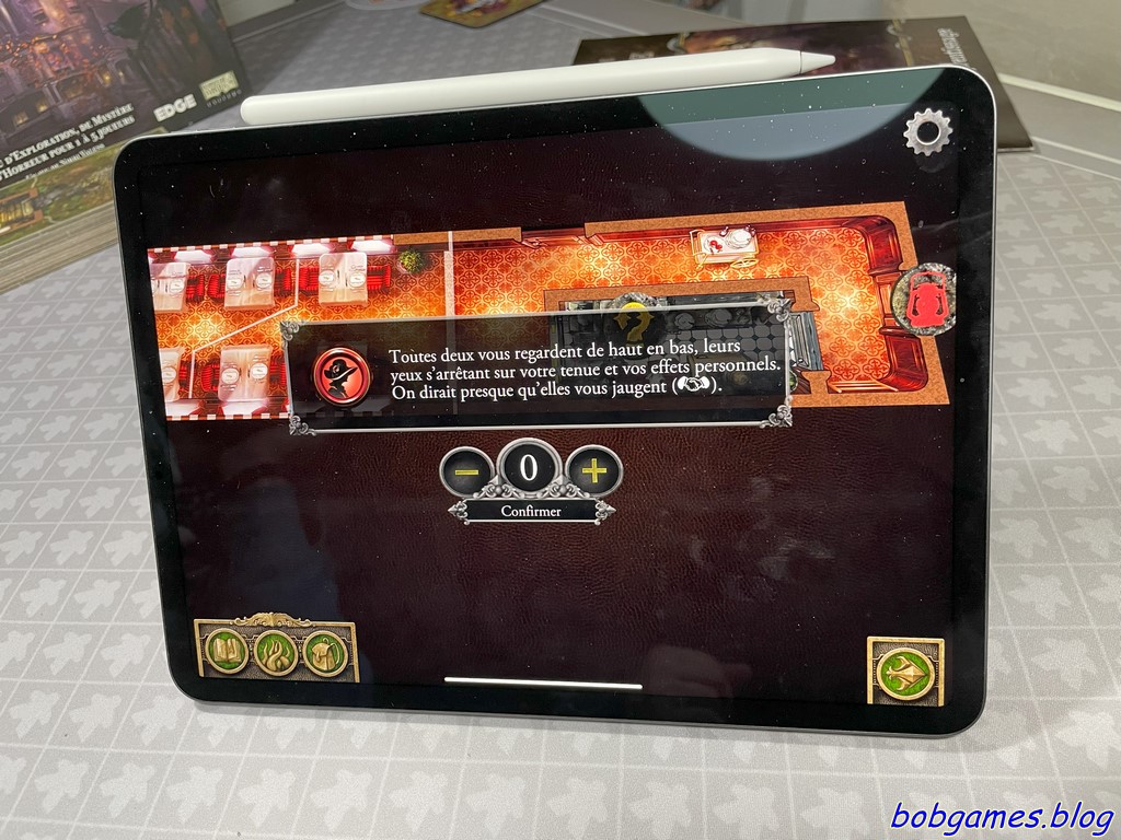 L’un des aspects les plus remarquables du jeu est son application mobile, qui joue un rôle crucial dans le déroulement de l’histoire. Cette application n’est pas seulement un outil pratique, elle est le cœur de l’expérience de jeu. Elle gère les événements, les découvertes, les dialogues et les actions des monstres, tout en proposant des éléments sonores (très répétitifs, trop…) qui augmentent l’immersion. Grâce à cette application, les joueurs peuvent se concentrer sur l’exploration et l’interaction avec l’univers du jeu sans se soucier de la gestion complexe des règles et des figurines.