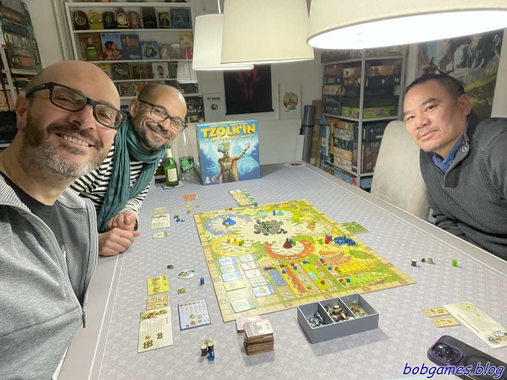 Mais tout ça n’a pas d’importance, l’important c’est que Tzolk’In est maintenant un jeu grandiose, édité par Iello, et dont le co-auteur est encore ce diable de Simone Luciani. Oui le cycle de cette 10ème saison n’est pas terminé, quatrième jeu déjà pour honorer cet auteur de renom.