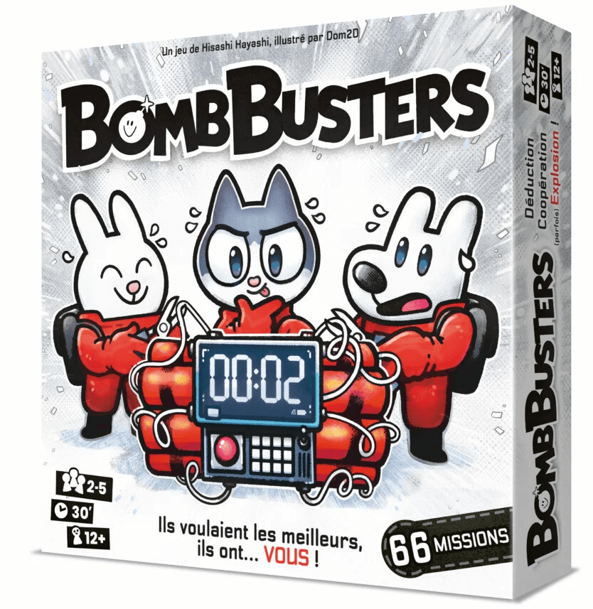 Bilan : C’est vraiment très bon. Rien d’extraordinaire non plus, mais le tout fonctionne. On s’amuse, on déduit, on explose et on s’engueule. Parfait. Un coopératif sans effet leader, sans règles compliquées. 3 parties jouées en tout, de 16 à 20 minutes, à 4 joueurs. Une explosion et 2 victoires. Achat !
