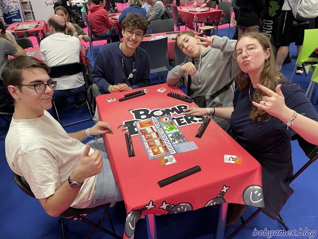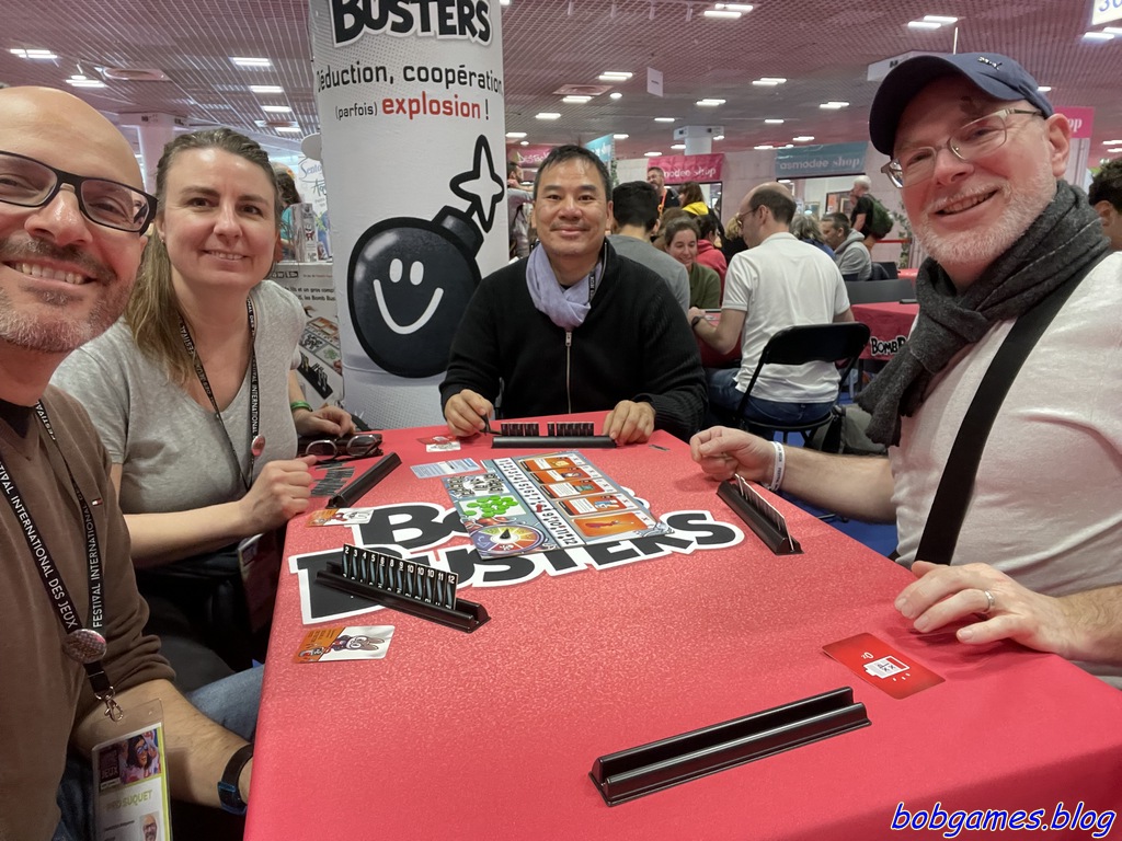 Enfin le reste de la troupe nous a rejoint, on se retrouve donc au complet sur 2 tables chez Cocktail Games pour tester Bomb Busters ! Un jeu explosif… bon d’accord elle est facile. Mais de quoi s’agit-il ? Un jeu en équipe où il faut ne pas faire exploser la bombe. Pas d’équipes adversaires ? donc pas comme Time Bomb.