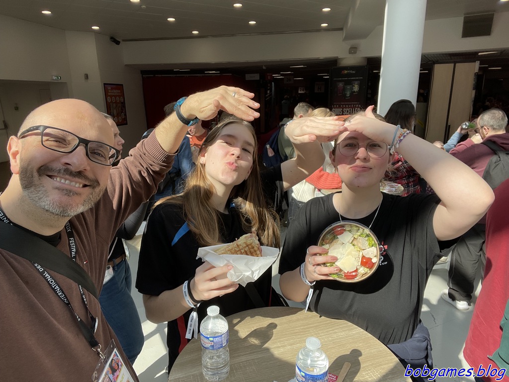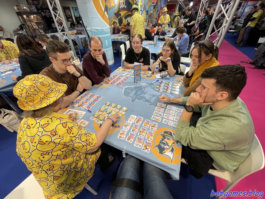 9h00, c’est l’ouverture des portes et tout le monde fonce comme si une édition collector de l’As d’Or était offerte aux 100 premiers. On vise une grosse table pour un bon jeu expert, mais c’est la débandade : tout est déjà pris d’assaut. À neuf joueurs, c’est mission impossible et en moins de deux minutes, on est tous éparpillés dans la foule, perdus, hésitants, cherchant une solution.