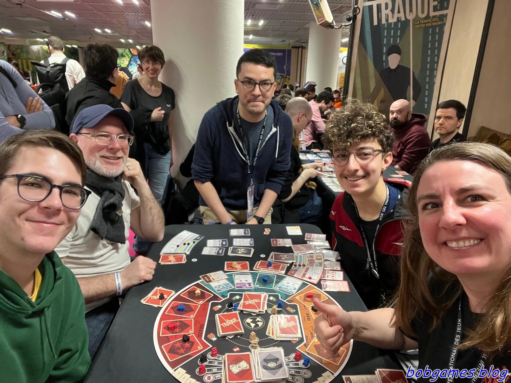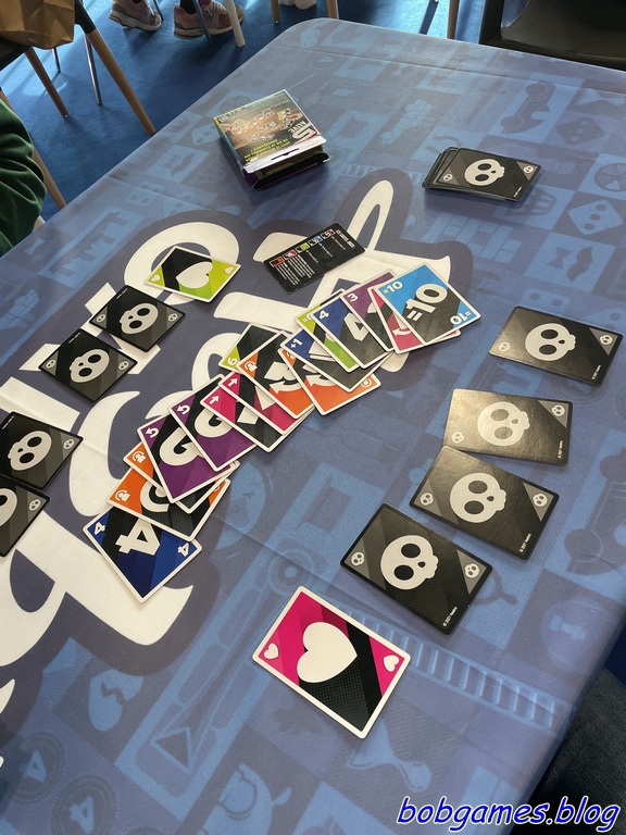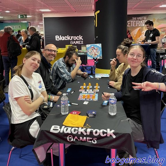 Encore un coopératif. On est chez Blackrock Games pour tester The Same Game, édité par Spielwiese. On s’installe avec 2 sympathiques inconnus. On nous explique les règles. J’y comprends rien. On joue un premier tour. Je fais faux. On perd. J’ai rien compris. On me réexplique les règles. J’ai compris. On rejoue. Tous les autres joueurs font leur tour. On gagne. Arrive mon tour. Je joue. On perd. Bref. J’ai définitivement rien compris à ce jeu.