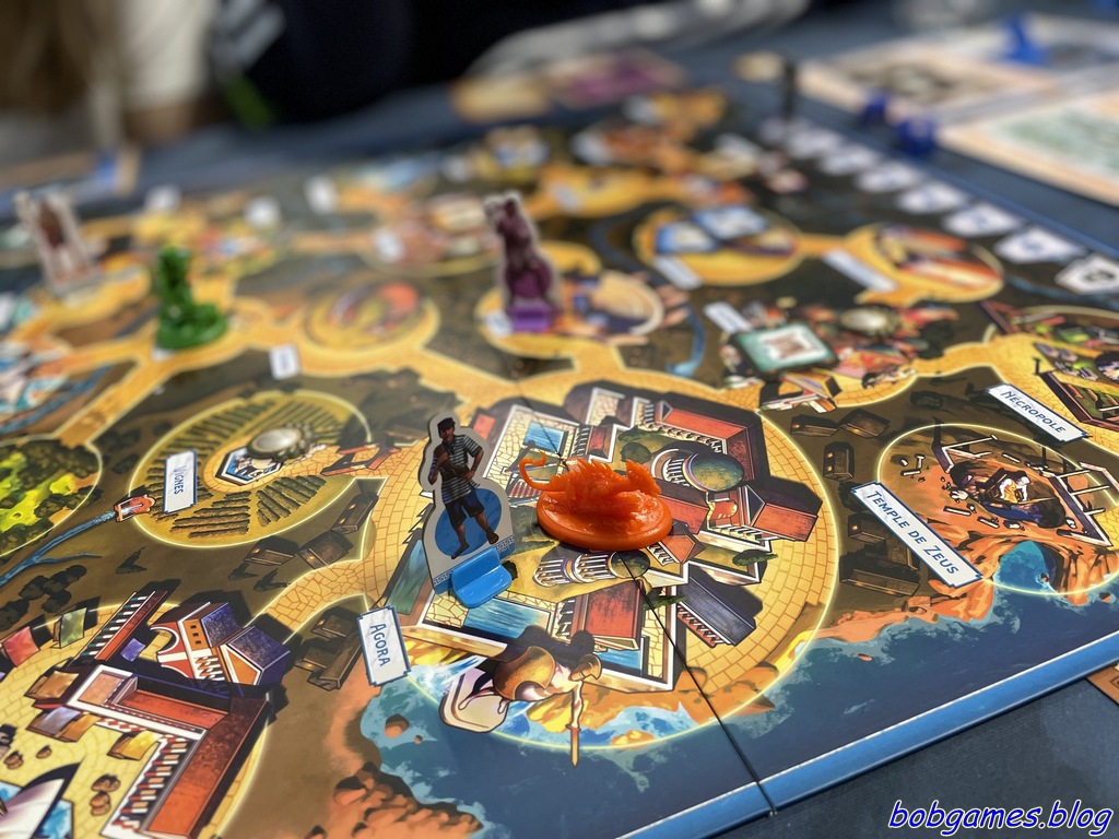 Horified, vous connaissez ? c’est une mécanique de jeu qui nous vient des USA, édité par Ravensburger. Ici c’est la version des monstres grecs et la thématique me plaît bien. Survivre à des monstres légendaires (Méduse et Cerbère pour cette partie) en coopératif, trouver le moyen de les vaincre et… les tuer.