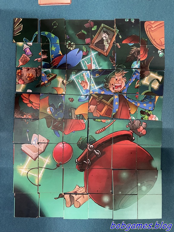 Bilan : Amusant. Mini casse-tête orienté jeune enfant, clairement, on s’amuse à optimiser sa pose et à devoir prendre des choix parfois difficiles sur l’abandon de trésors, laissés dans un coin sans accès. 12 minutes avec les règles pour 3 joueurs. Victoire pour moi. Pas d’achat.