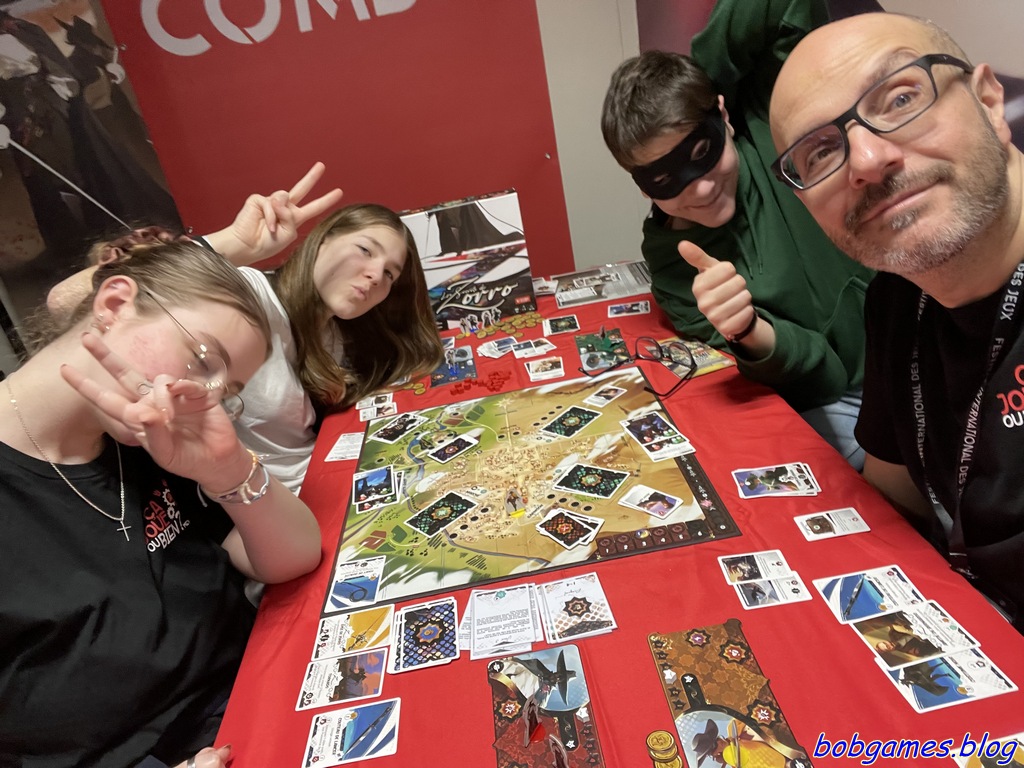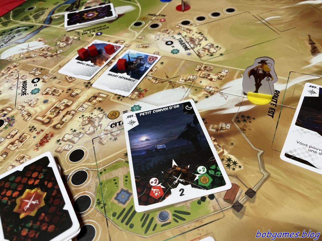 Bilan : Un jeu léger par ses règles mais diablement réussi par son côté stratégique, où chaque décision compte et où la coopération entre les joueurs est essentielle pour surmonter les vilains gringos. J’ai adoré le recherche d’informations cachées au détriment de s’équiper, nous obligeant à prendre des risques ou au contraire à maîtriser la situation (mais avec quelques sueurs froides). 90 minutes de jeu avec les règles pour 3 joueurs et victoire de l’équipe. Pas d’achat mais franchement le jeu le mériterait.