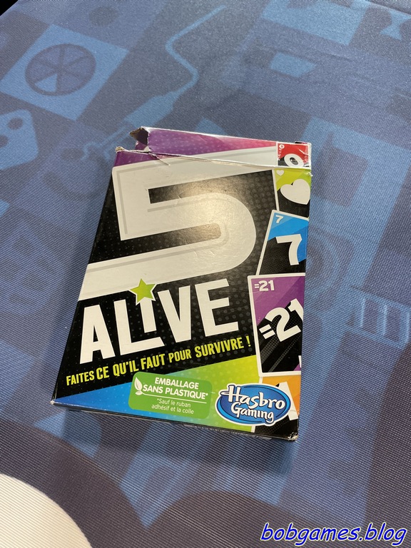 Bilan : Cette promesse de « jeu pour toute la famille », c’est encore une excuse pour vendre un produit sans âme. Pourquoi ne pas chercher à offrir quelque chose de vraiment nouveau, d’original, plutôt que de copier ce que tout le monde fait et d’y rajouter des cartes aléatoires pour faire genre ? Si on veut vraiment un jeu de cartes rapide et fun, autant jouer au UNO, qui a au moins la classe et l’historique derrière lui. Mais là, 5 Alive n’est qu’une pâle copie sans rien d’intéressant à offrir. Arrêtons avec cette manie de recycler des concepts en espérant juste gratter une part de marché. Mais non je ne suis pas fâché. Partie en 10 minutes avec les règles à 2 joueurs. Victoire de Lucas. Evidemment pas d’achat.