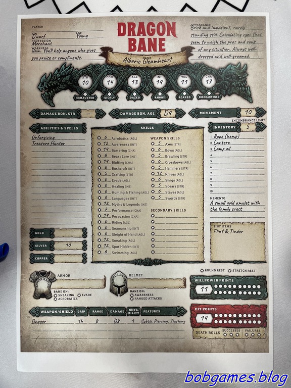 Dragonbane est un jeu de rôle qui a vu le jour en Suède sous le nom de Drakar och Demoner en 1982. Ce jeu est l’un des plus anciens et des plus populaires jeux de rôle suédois. Chez Arkhane Asylum, on le francise pour la première fois et on le fait jouer en partie démo de 2h30. Avec Tessa, Alana et Lucas, on s’installe et on commence par choisir notre aventurier ou aventurière.
