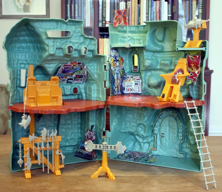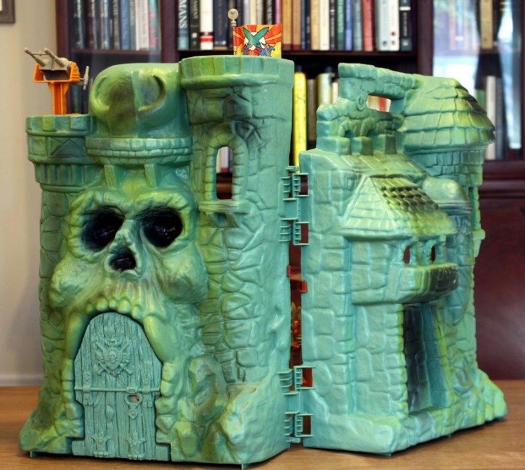 Sous le sapin, il avait reçu Musclor. L’original. Celui avec le torse qui tournait quand il prenait un coup. Mais il l’avait déjà. Alors ce matin-là, il prit la boîte avec son père et ils partirent ensemble l’échanger au grand magasin de jouets, le havre du jeu, les Jouets Weber. Et là, sur une étagère un peu plus haute, un peu plus loin, il l’a vu : Le Château des Ombres (Castle Grayskull). Sa boîte immense. Sa mâchoire qui s’ouvrait en criant presque. Ses murs verts, cabossés, mystérieux.
