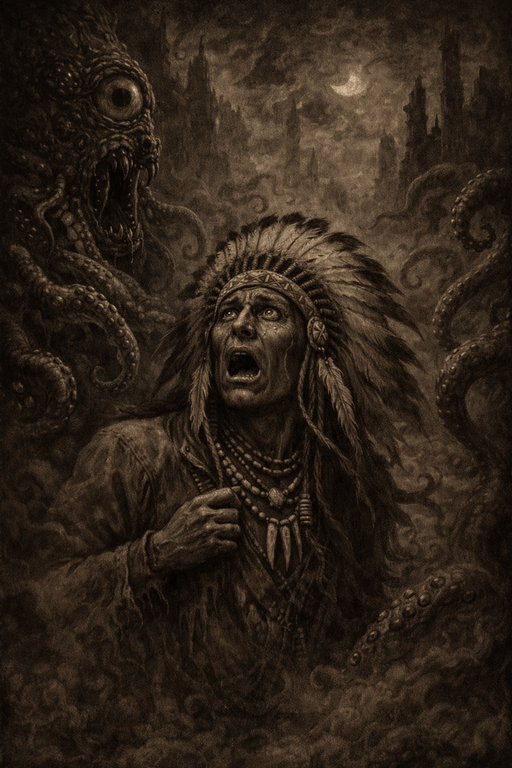 Joseph entra dans la grotte. Je n’aimais pas ça, mais il y entra quand même. Il tira avec le crochet. Et il y eut un cri. Un cri si glaçant qu’il n’aurait pas dû pouvoir exister. Pas un son. Une déchirure dans le cerveau. Une vibration qui donne envie de vomir son âme. Je le vis vaciller. Je sentis moi-même la santé mentale se fendre comme une glace trop fine. Joseph vit une ombre transparente venir vers lui. Il tira à nouveau. Le cri revint, plus proche, plus personnel. Puis quelque chose le happa. Une force qui lui drainait la vie, qui buvait sa chaleur, qui aspirait ce qu’il avait derrière les yeux. Il s’évanouit. Je me précipitai. Je le saisis. Je touchai cette force. Et elle se transféra sur moi. Voilà le truc avec les mauvais choix. Ils se font sans fanfare. Juste un contact. La sensation fut immédiate. Une main froide autour du cœur. Une absence qui cherche à entrer. Je résistai. Dieu sait comment. Je serrai les dents. J’ai tenu parce que j’ai déjà tenu, là-bas, dans les tranchées, quand le monde voulait vous casser en deux. J’ai senti mon sang se ralentir. Mes mains devenir lourdes. Et puis, avec une violence sèche, j’ai arraché mon bras et je suis tombé en arrière, libre, haletant, vivant. Pas sans mal. Pas sans perdre une partie de moi. Je fuis dehors. Je laissai l’arme crochet dans la grotte. Perdue. La créature avait reculé. Encore une chance inouïe pour moi. Passé près de la mort deux fois dans la même matinée. Je commence à manquer de crédit auprès du destin.