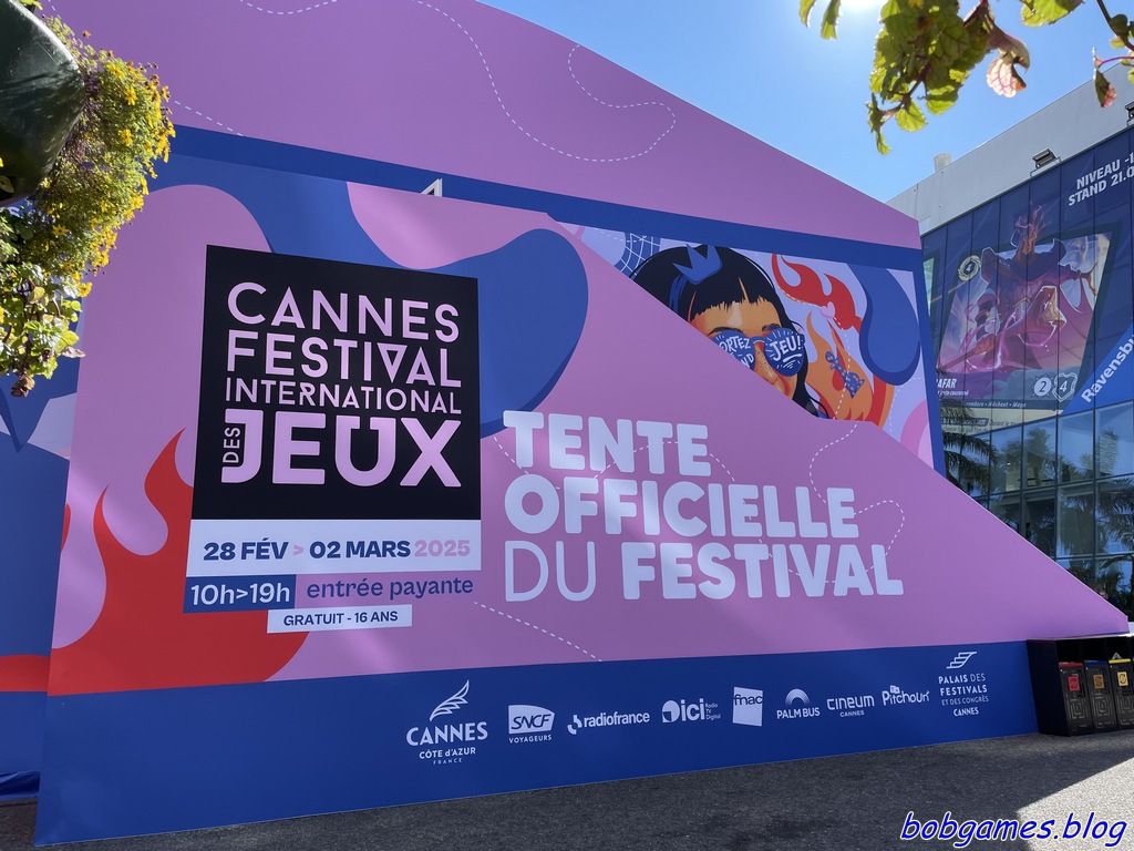 Jeudi 22 février 2024, 13h19. Oui !!!! Enfin !!!! Nous sommes de retour pour cette 37ème édition du Festival International des Jeux de Cannes, plus communément appelé le FIJ. De gros changements cette année avec la création de 2 badges pros, un pour les « vrais » pros, comprenez par là les auteurs, illustrateurs ou encore les éditeurs et un autre pour les « faux » pros, à savoir les associations, ludothèques et autres acteurs du jeux de société. Le « vrais » peuvent entrer dès le jeudi matin à 9h00 et les « faux » dès 14h00. Autre grosse nouveauté, les Pass Privilège qui donnent quasiment les mêmes droits que les badges « faux » pros et donc notamment une entrée le jeudi à 14h00.