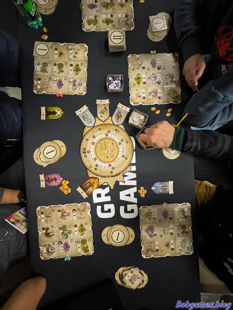 Pourquoi cet empressement ? Nous sommes 5 et il n’y a qu’une table pour jouer à 5 sur le stand de l’éditeur ! Est-ce que nous l’avons eue ? (si vous avez regardé la photo ci-dessus, vous avez déjà la réponse…)
