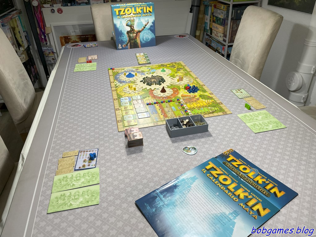 Mais tout ça n’a pas d’importance, l’important c’est que Tzolk’In est maintenant un jeu grandiose, édité par Iello, et dont le co-auteur est encore ce diable de Simone Luciani. Oui le cycle de cette 10ème saison n’est pas terminé, quatrième jeu déjà pour honorer cet auteur de renom.